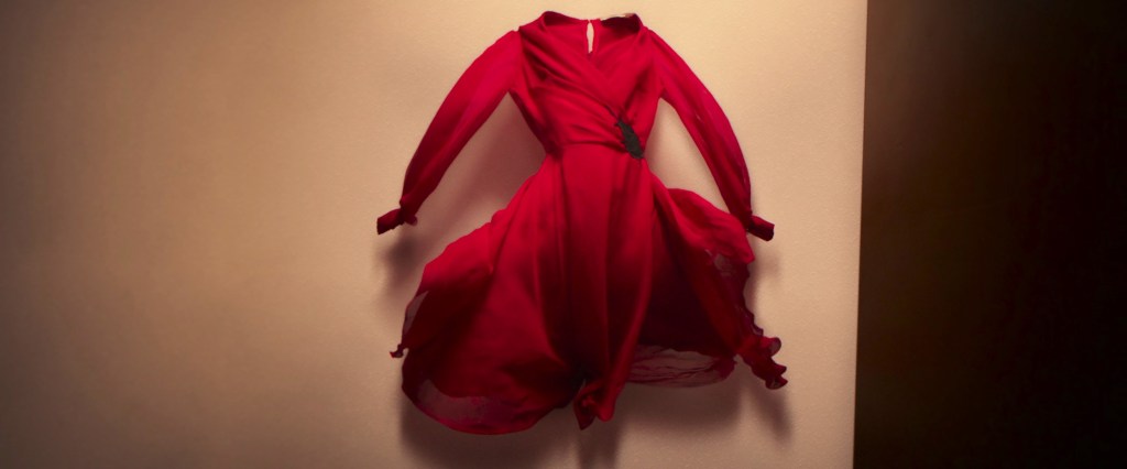 La boutique de prêt-à-porter Dentley & Soper’s, son petit personnel versé dans les cérémonies occultes, ses commerciaux aux sourires carnassiers. Sa robe rouge, superbe, et aussi maudite qu’une maison bâtie sur un cimetière indien. De corps en corps, le morceau de tissu torture ses différent(e)s propriétaires avec un certain raffinement dans la cruauté.