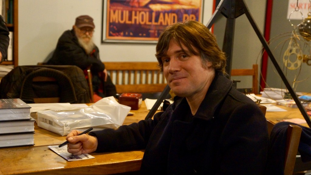 C’est dans un premier temps en sa qualité de fanéditeur qu’il interviendra, à 19 heures, au sujet des fanzines à tirage limité qu’il publia à la fin des années 1990 : Les Nains au cinéma (1998), Cinéma culte européen – volume 1 : Eurociné (1999), Constantin Belinsky, 60 ans d’affiches de cinéma (1997, réédition en 2000), sans oublier sa collaboration au défunt fanzine Monster Bis, dont il rédigea un numéro consacré au comédien Daniel Emilfork.